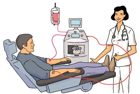 LE PRELEVEMENT : c'est le grand jour : Il s'est sûrement passé plus d'un mois depuis que vous avez été appelé. Le prélèvement se fera dans un centre hospitalier dans le secteur de votre résidence actuelle ( possible à l'étranger ). Il se fera probablement par cytaphérèse (prélèvement sanguin), il durera plus de 3 heures. Pour réduire ce temps, il faut augmenter la densité de CSH dans votre sang. Pour cela vous allez être préparé pendant le 4 jours précédents le prélèvement par une prise de médicaments déstinés à "booster" la migration des CSH vers votre sang.